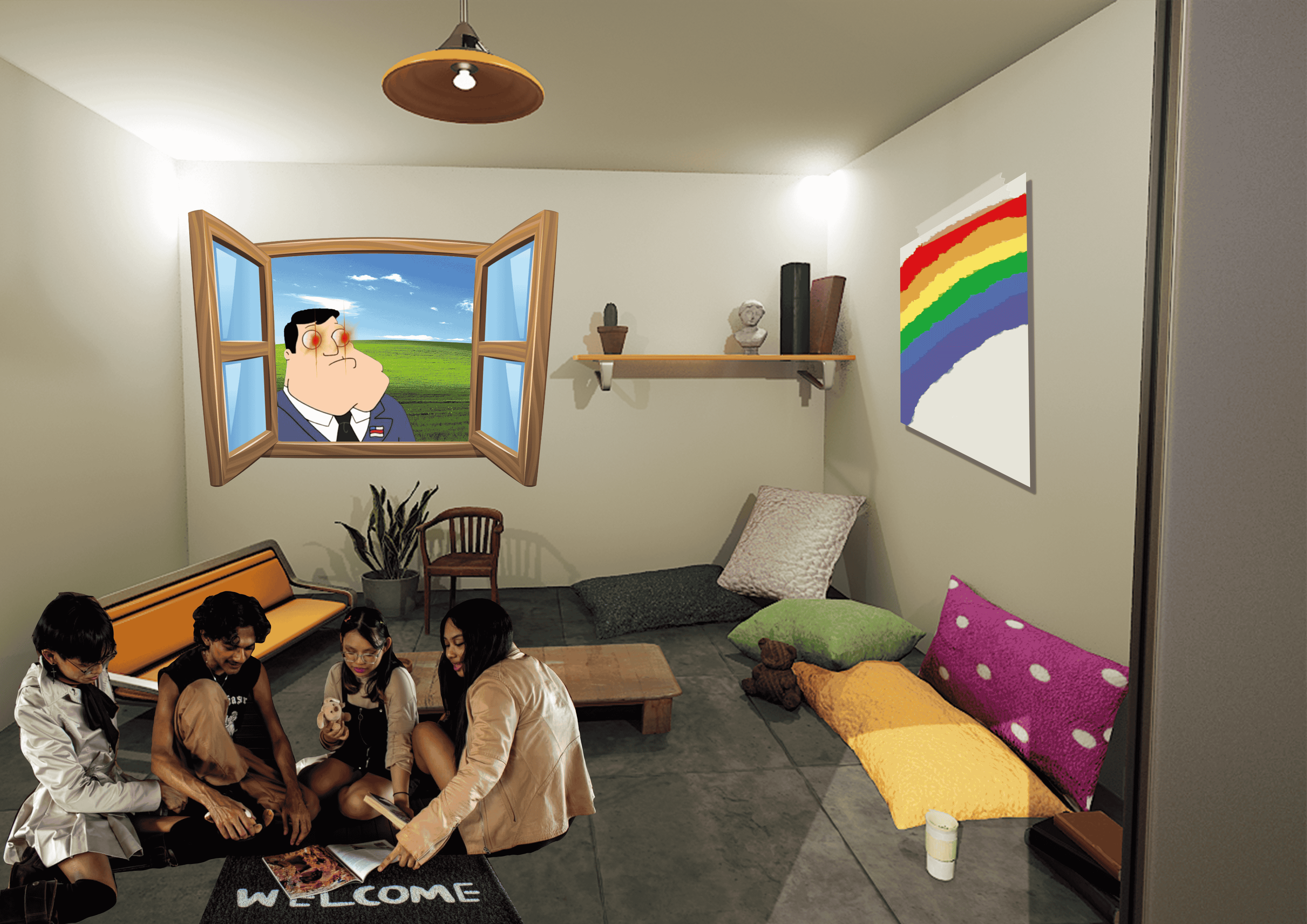 Home is not always a safe space for everyone, and the queer youth have become rather nomadic in search of safe spaces to coexist. thirdspac3 is a series of digitally-rendered photo collages revolving around the idea of transitional spaces in Singapore, and their tranquility and hostility towards the queer community.