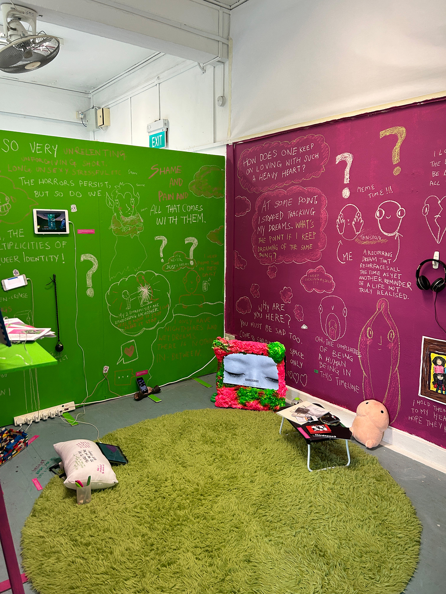 virtualspectre????????? is a series of video works, each highlighting a different part of the artist’s queer identity. Delving into the highs and lows of navigating one's identity and existence in the digital realm, a series of videos chronicles their odyssey of self-discovery. Grappling with the challenges of coming out and the complexities of existing as a queer individual today. Central to the narrative is an investigation of how screen-based media perpetually shapes and amplifies digital identities; a poignant backdrop against which the artist's story unfolds.